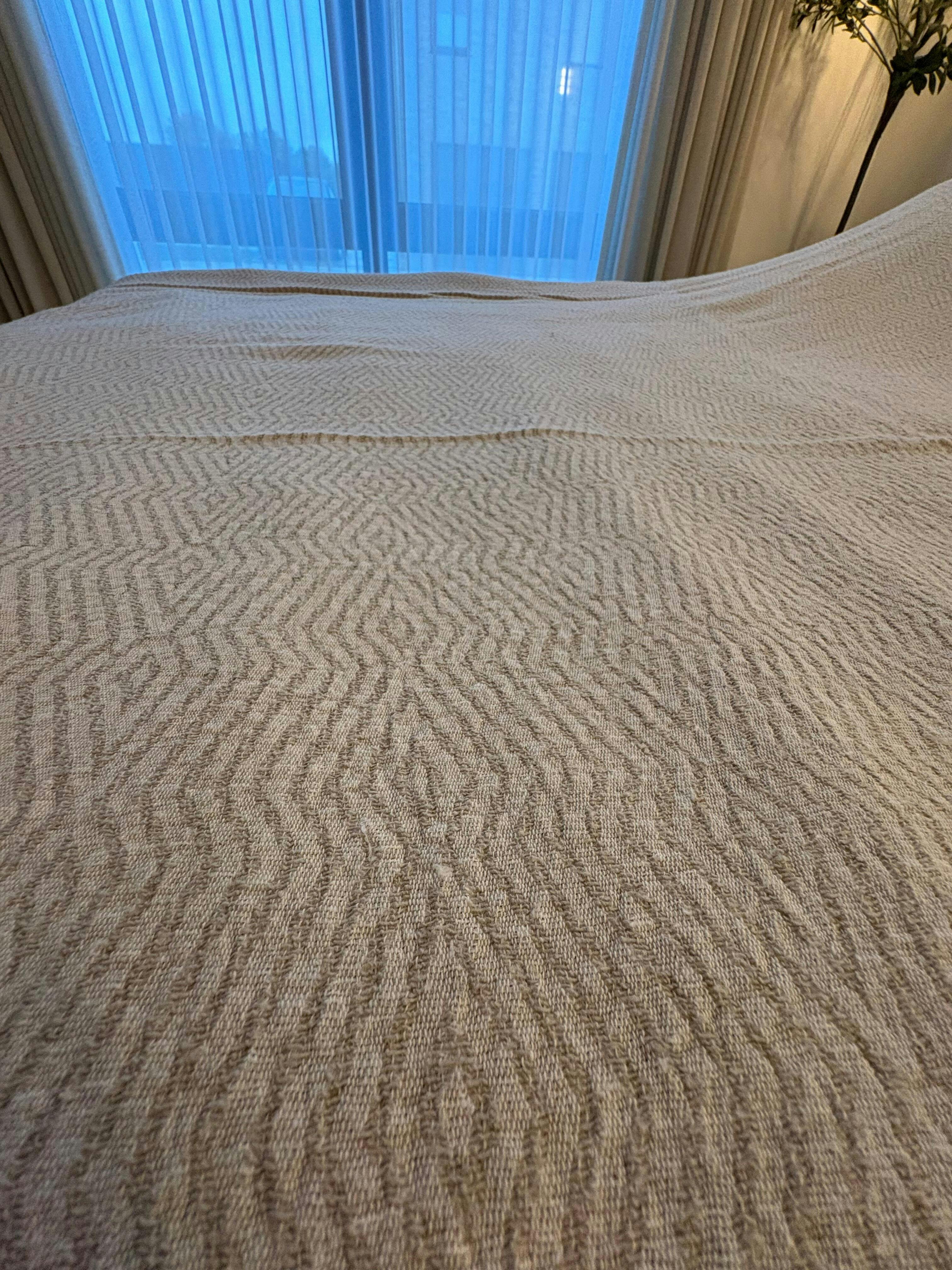 Ich benutze sie als Tagesdecke für unser Bett und habe ewig nach einer großen gesucht. Wir haben ein 220 x 220 cm Bett, und bisher war alles immer zu klein … diese hier passt endlich perfekt!